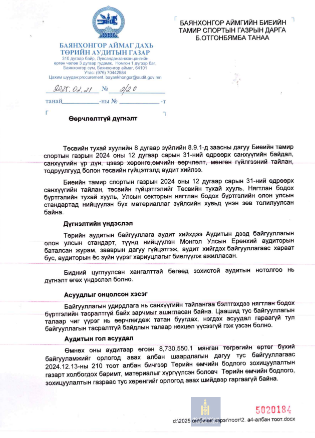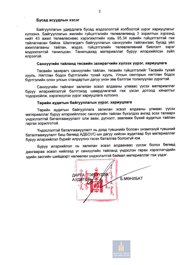 ТӨСӨВ САНХҮҮГИЙН ИЛ ТОЛ БАЙДАЛ